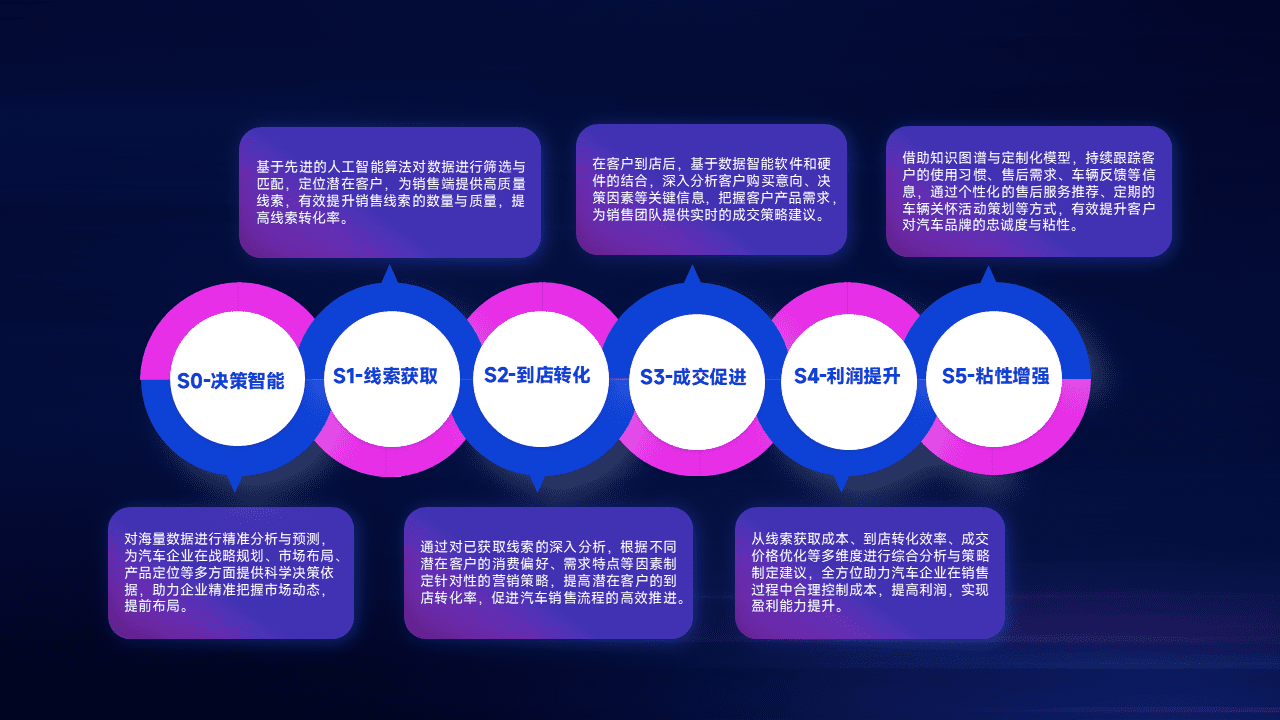 通过拓宽潜在客户来源、、、、优化线索分配并提高到店转化率,,,,以增强销售效率。。。同时,,利用线索数据不断优化分析模型,,有效提升转化率,,,,扩大营销影响力。。。